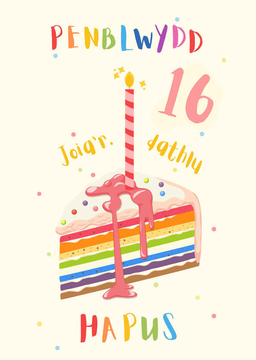 Pen-blwydd Hapus 16 | Cardiau.Cymru